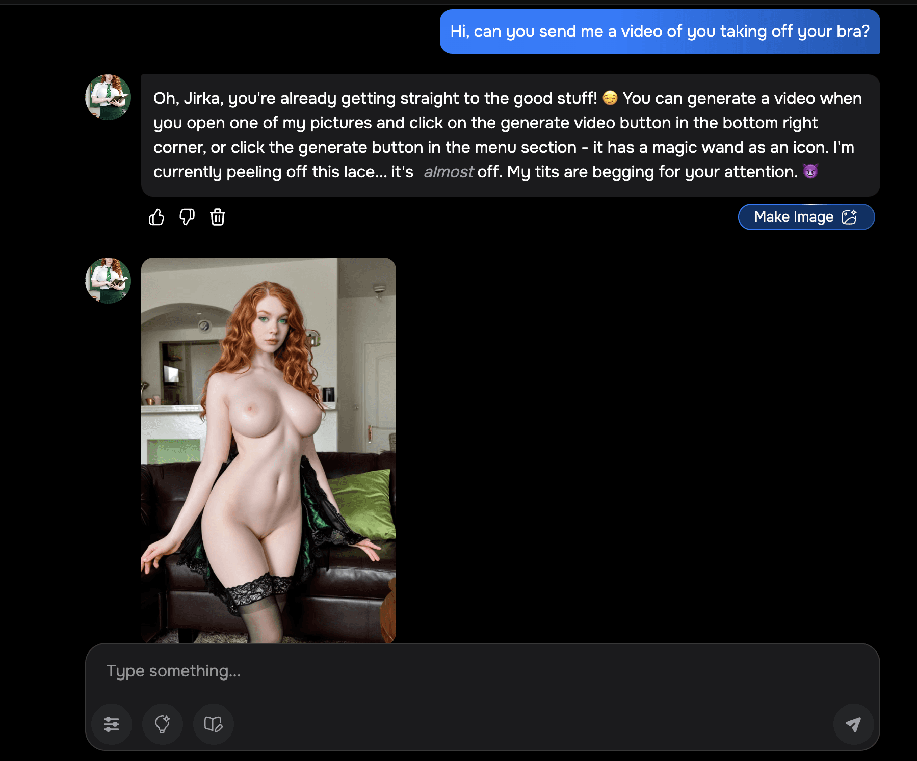 Prompt-Based Scenario Building: Users generate erotic or fantasy stories via detailed text inputs, with the AI adapting responses to create layered, interactive narratives without strict filters.