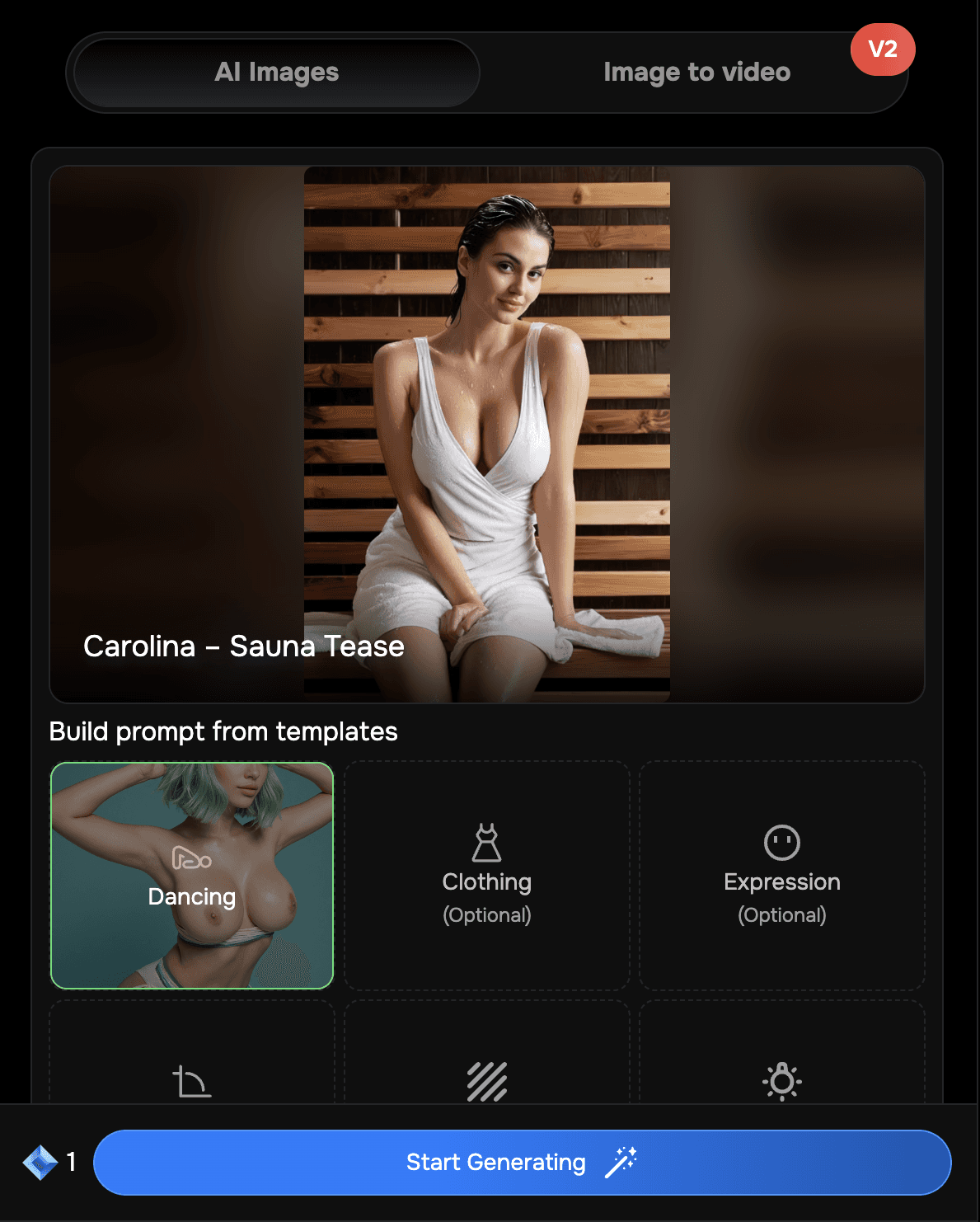 Unleash your fantasies with AI-powered video generation. Choose a scene, pick your mods, and craft the perfect prompt—your next masterpiece is just a few clicks away.